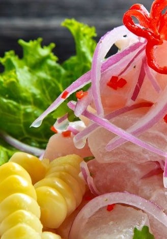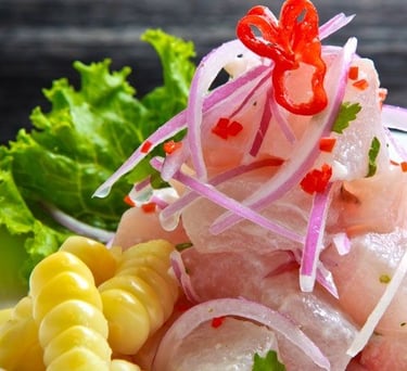 Delicioso ceviche con pescado local y limón.