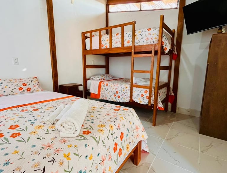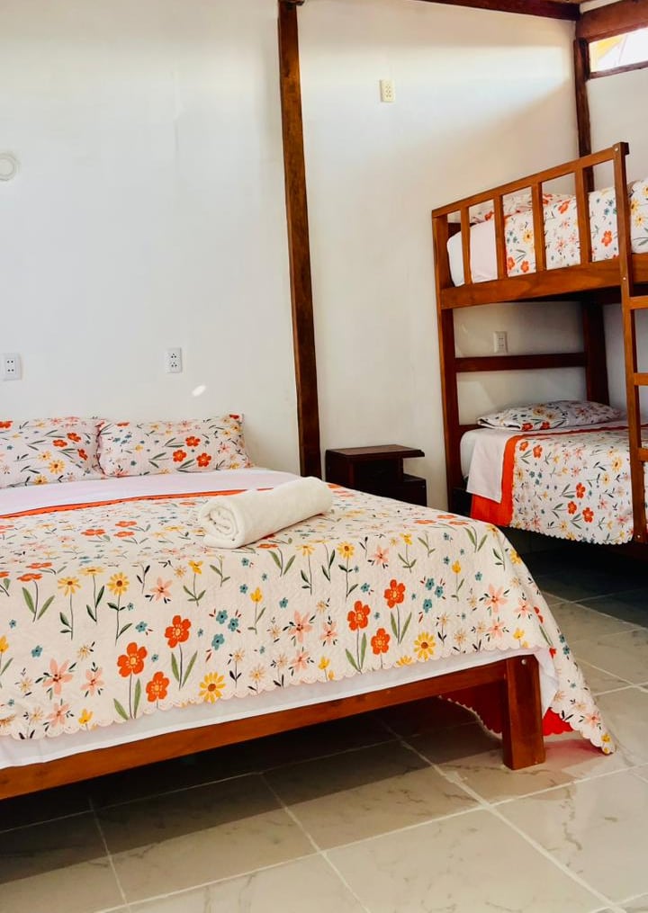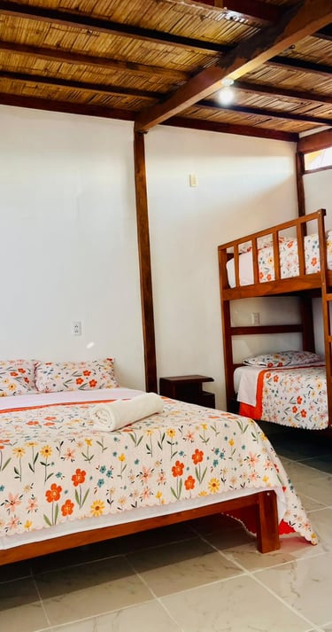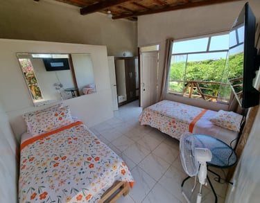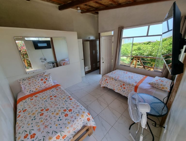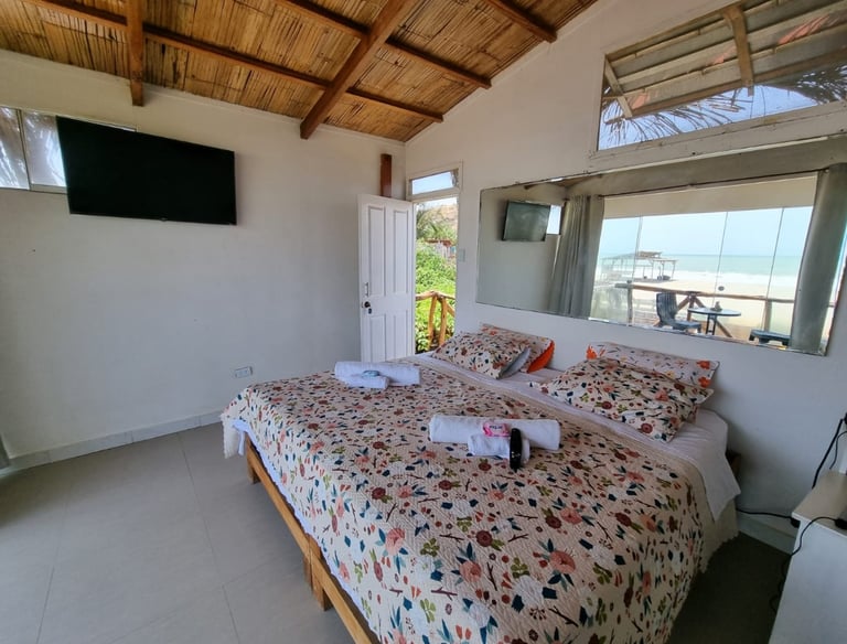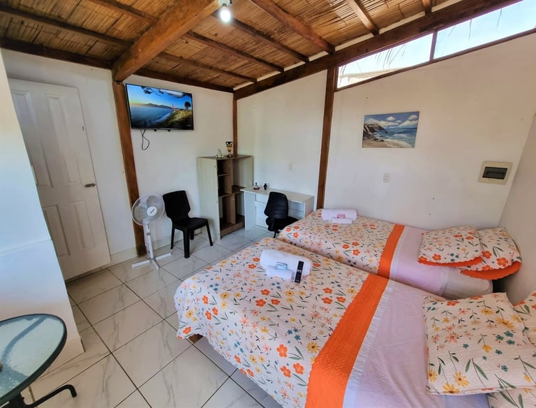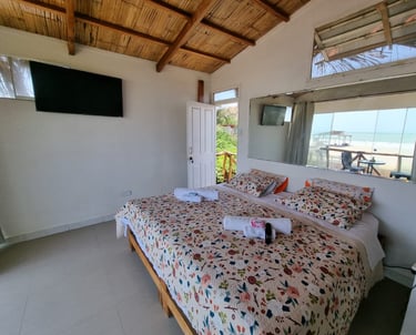 Esta es la Habitación 1, un espacio acogedor y privado diseñado para parejas o viajeros que buscan una estadía sencilla pero confortable frente al mar. Perfecta para descansos cortos y escapadas tranquilas.